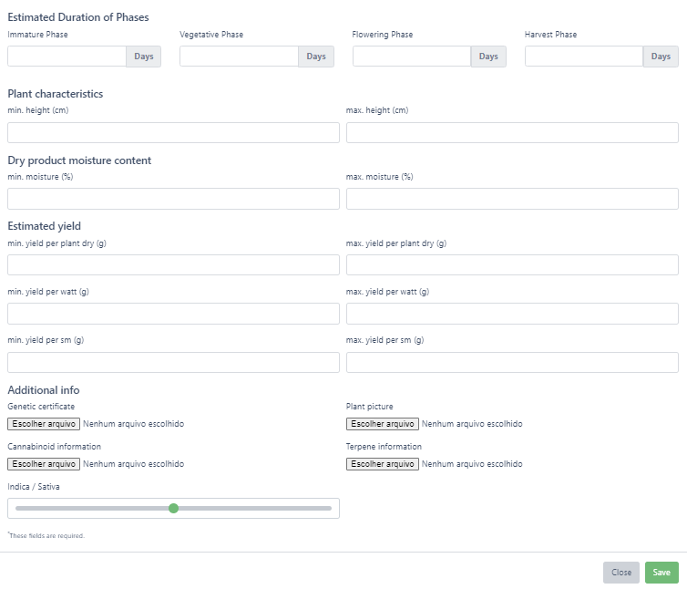 Note: If you don’t have all the information on hand when creating your cultivar, you can come back and edit these fields and fill in additional information at any point.