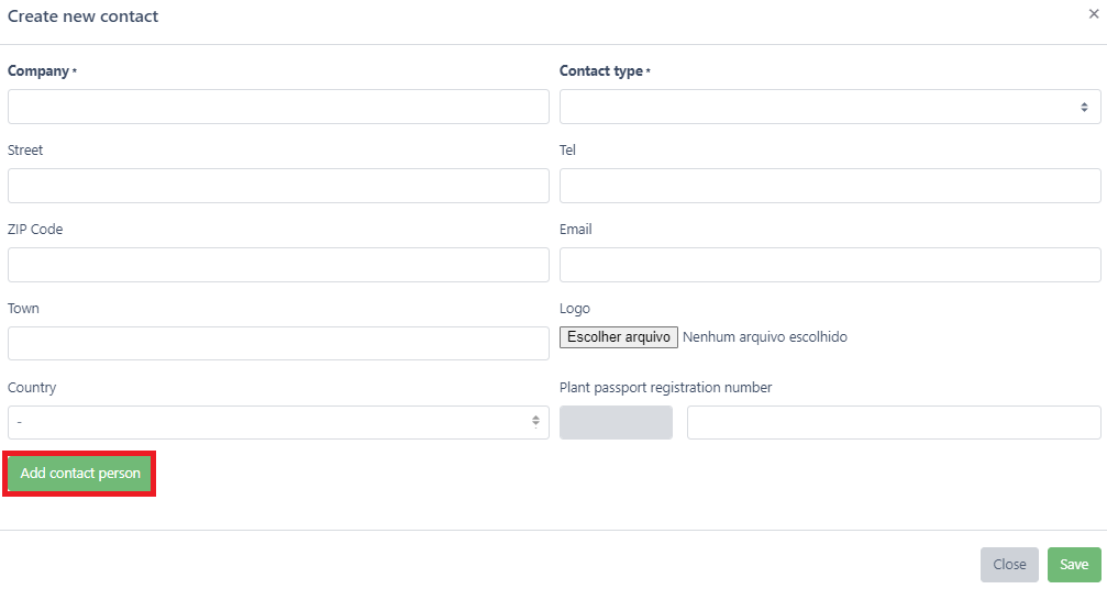 At the bottom of the Create new contact window, click on the green button + Add contact person.