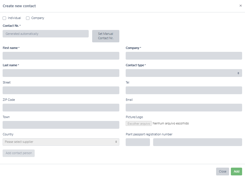 Choose between Individual or Company contact and according to that choice, relative fields will be unlocked.