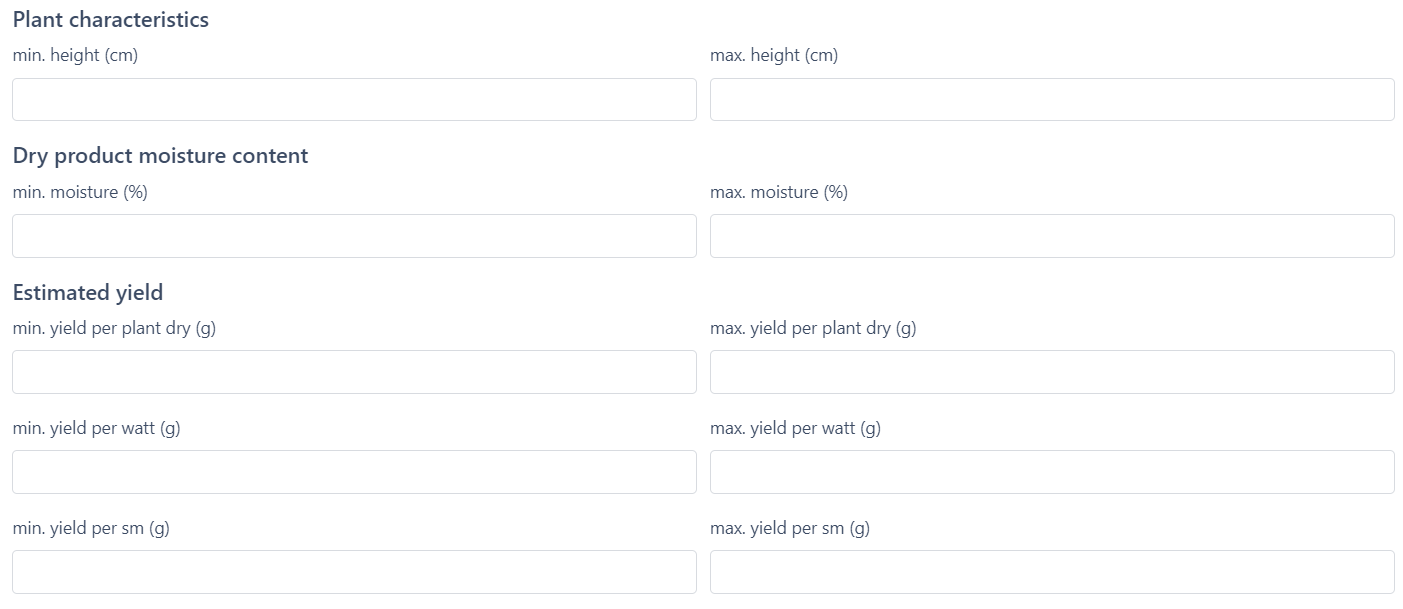 Note: If you don’t have all the information on hand when creating your cultivar, you can come back and edit these fields and fill in additional information at any point.