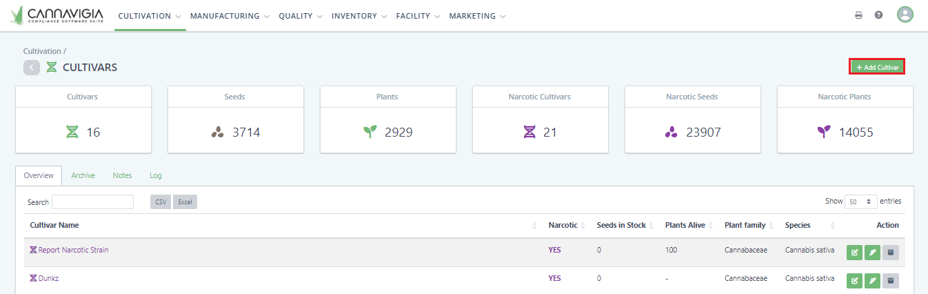 To add a new cultivar to the Cannavigia system, follow these steps.