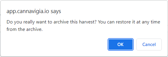 Confirm the archiving of the harvest by clicking OK.
