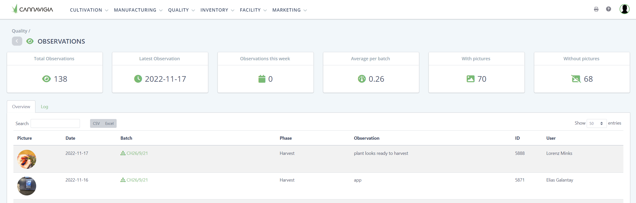 To navigate to the observation dashboard go to Quality > Observations.