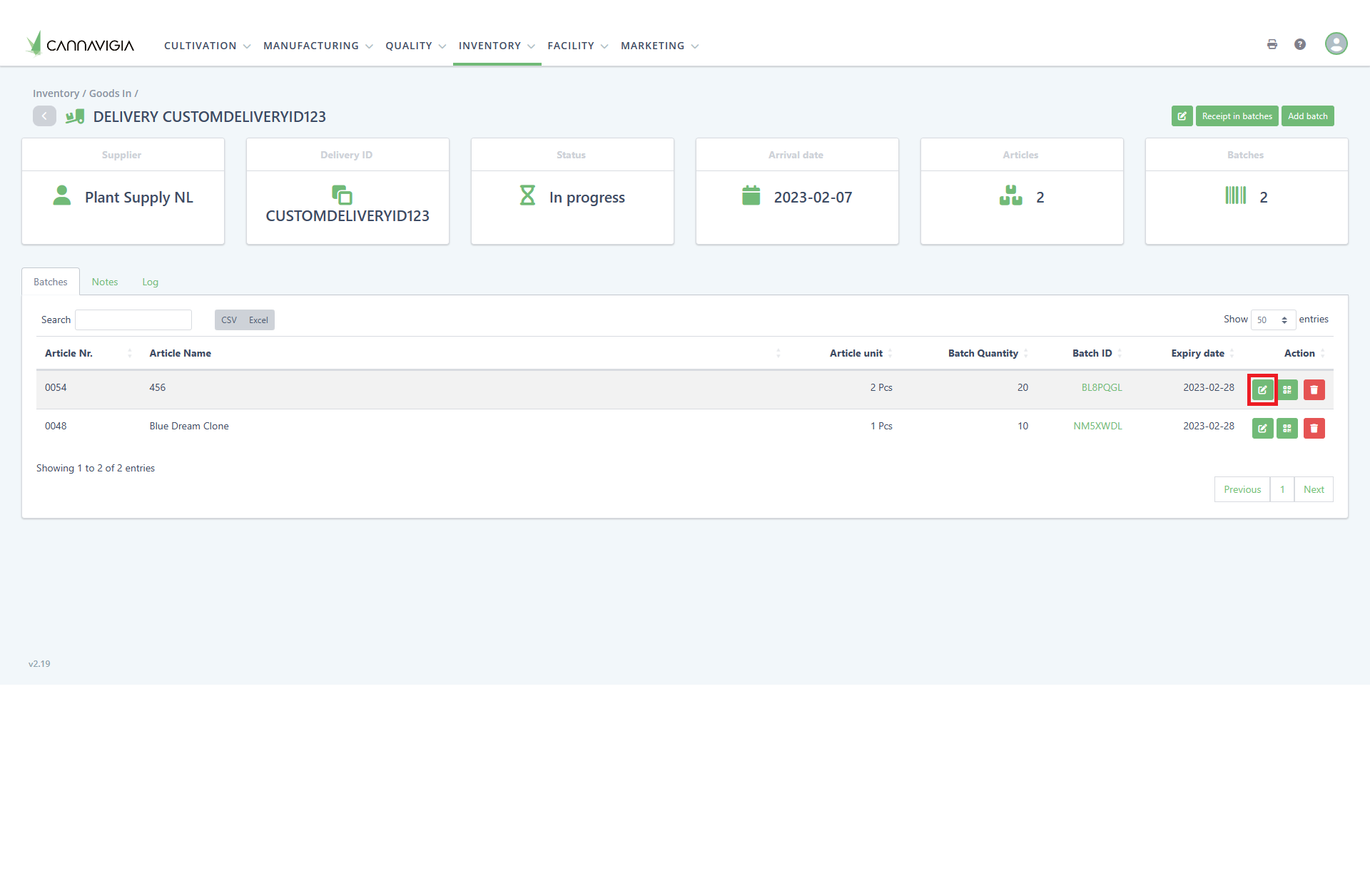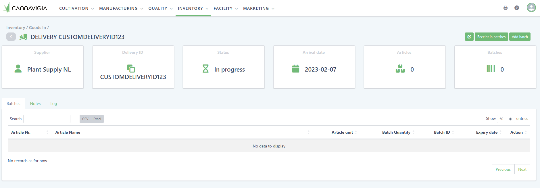 Note: If the status of the delivery is set to Finished you will no longer be able to edit your Article Batches.