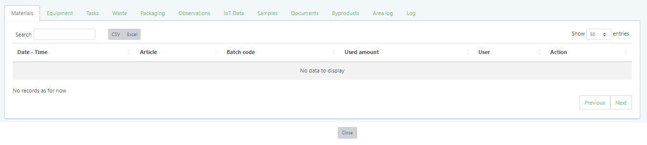 Productions represent the active manufacturing process. Productions allow you to document everything required to track your manufacturing process. From used material, equipment and tasks right down to the packaging materials everything can be documented in an easy and intuitive manner.