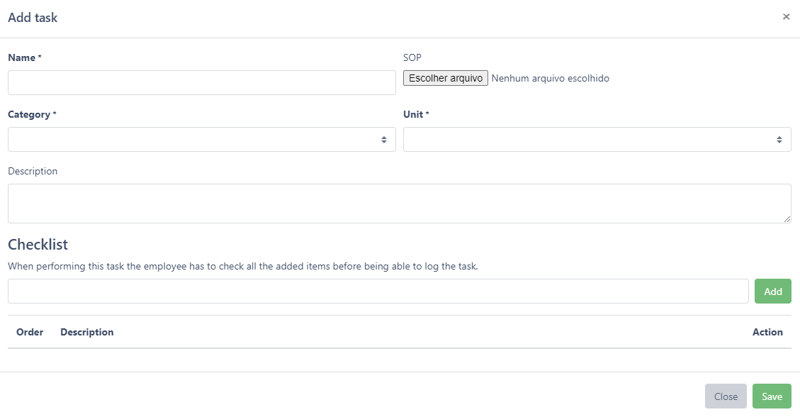 You can also incorporate a checklist into the task by writing a checklist item such as an instruction and clicking Add to add it as an item to the checklist. The items can be reorganized using the drag-and-drop function. The checklist items will then be visible every time this task is performed. Users will have to check every item in the checklist before performing the task.