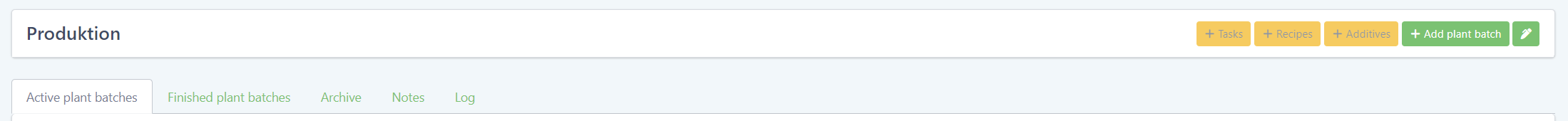Projects now have the tab “Active plant batches” displaying all plant batches with plants in them and “Finished plant batches” displaying all plant batches without plants in them that have been finished.