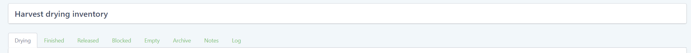 Drying inventory has gotten a tab for each state a drying batch can be in: Drying (ongoing drying process), Finished, Released, Blocked and Empty. This results in a more intuitive user experience.