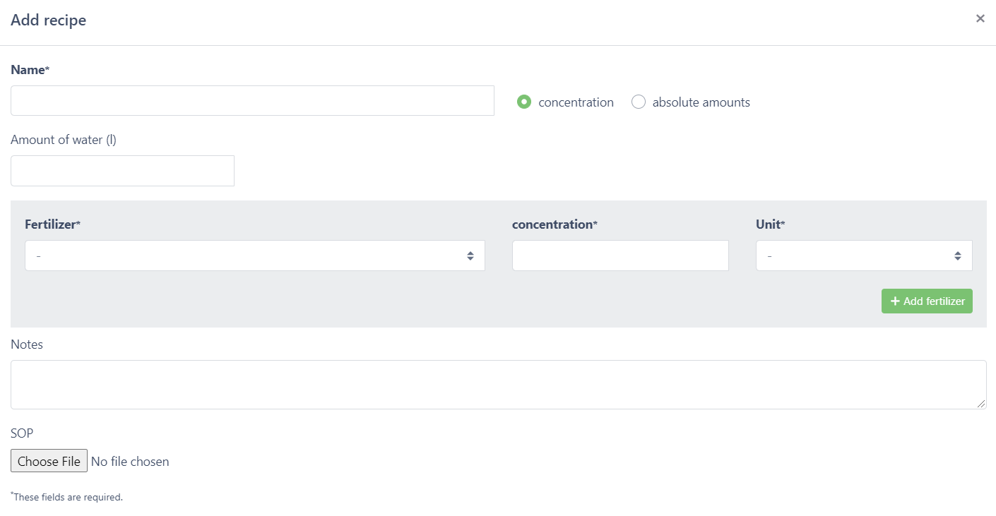 If you are using automated dosing units to deliver the exact right amount of your additives you can easily document this now in Cannavigia. When creating a recipe you will now be able to enter concentrations rather than absolute amounts.