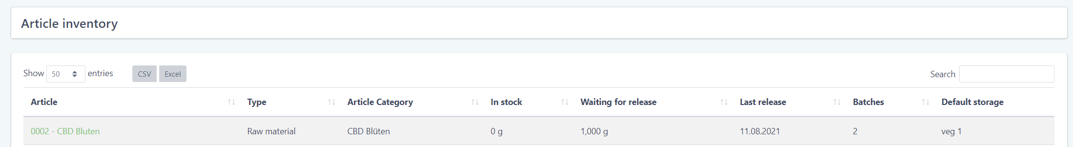 The new article inventory gives you a better overview of all the products, raw materials and intermediates you have at hand. Clicking on an article shows you all batches of that article.
