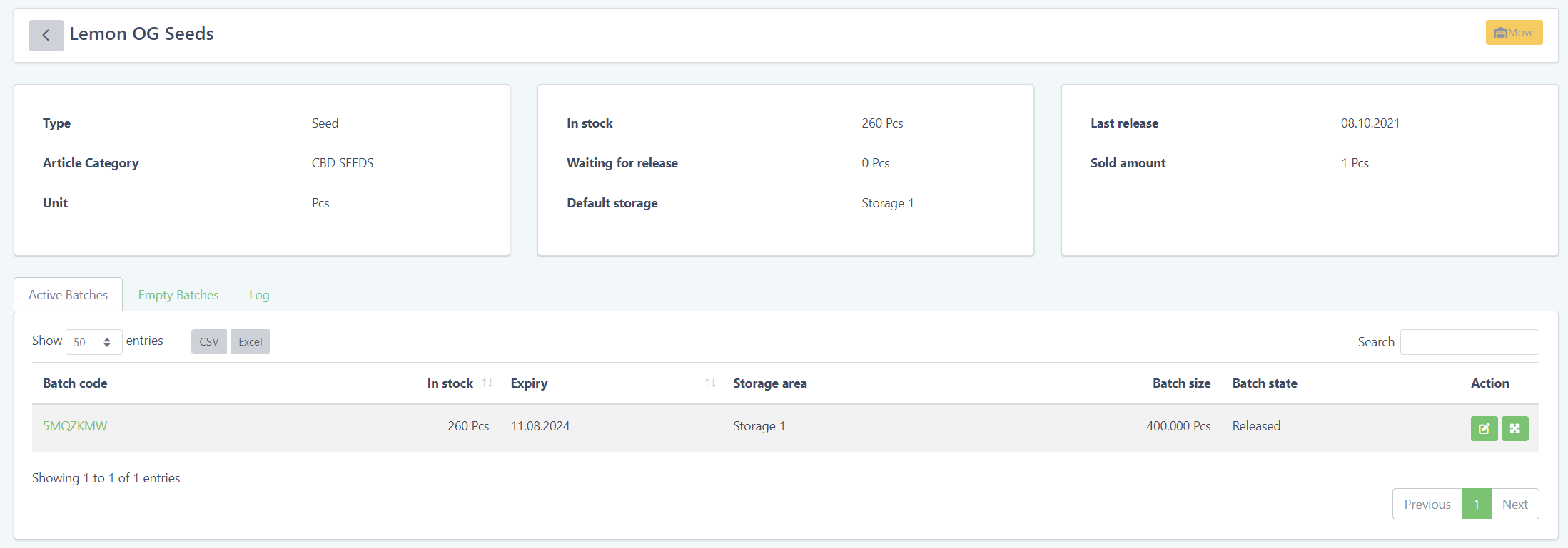 Harvest inventory has an additional tab “Empty harvest batches” which displays all harvest batches that have no more weight available.