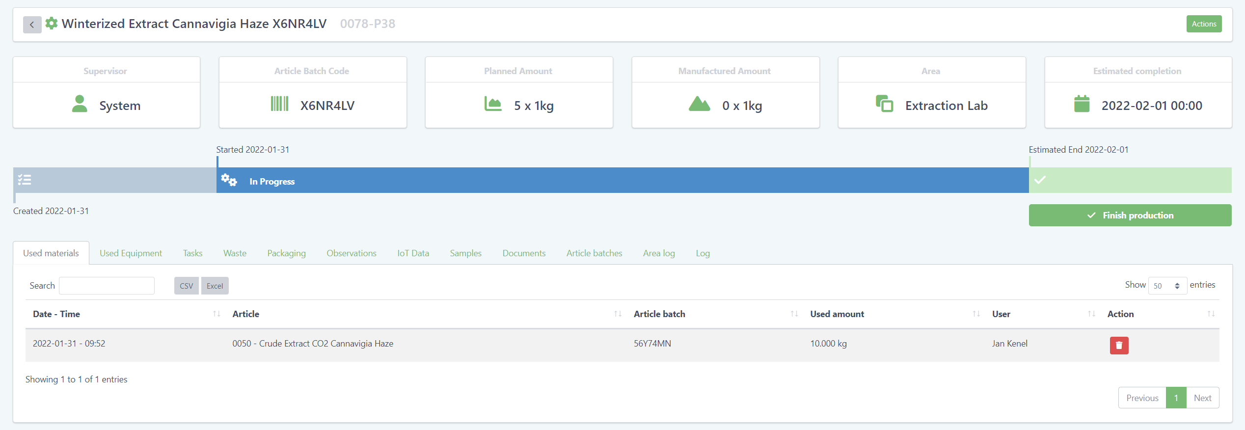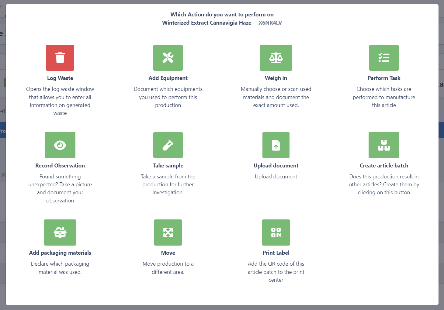 Manufacturing • Article Batch View • Plant Cultivation Journal • QR code scan navigation