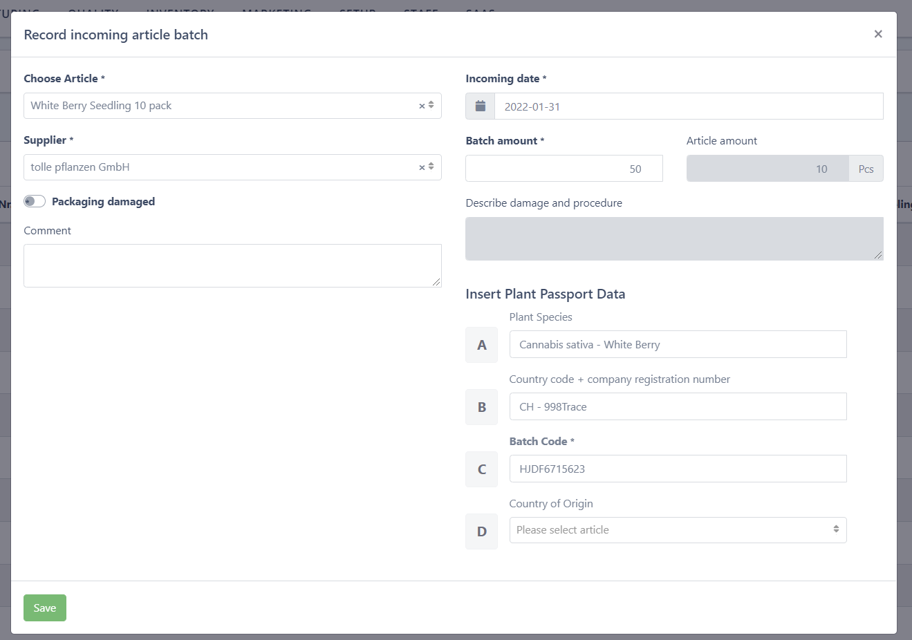 We streamlined the goods in workflows for getting plants into your cultivation. This includes plant passport information and adding the plants from the plant inventory to your batches.