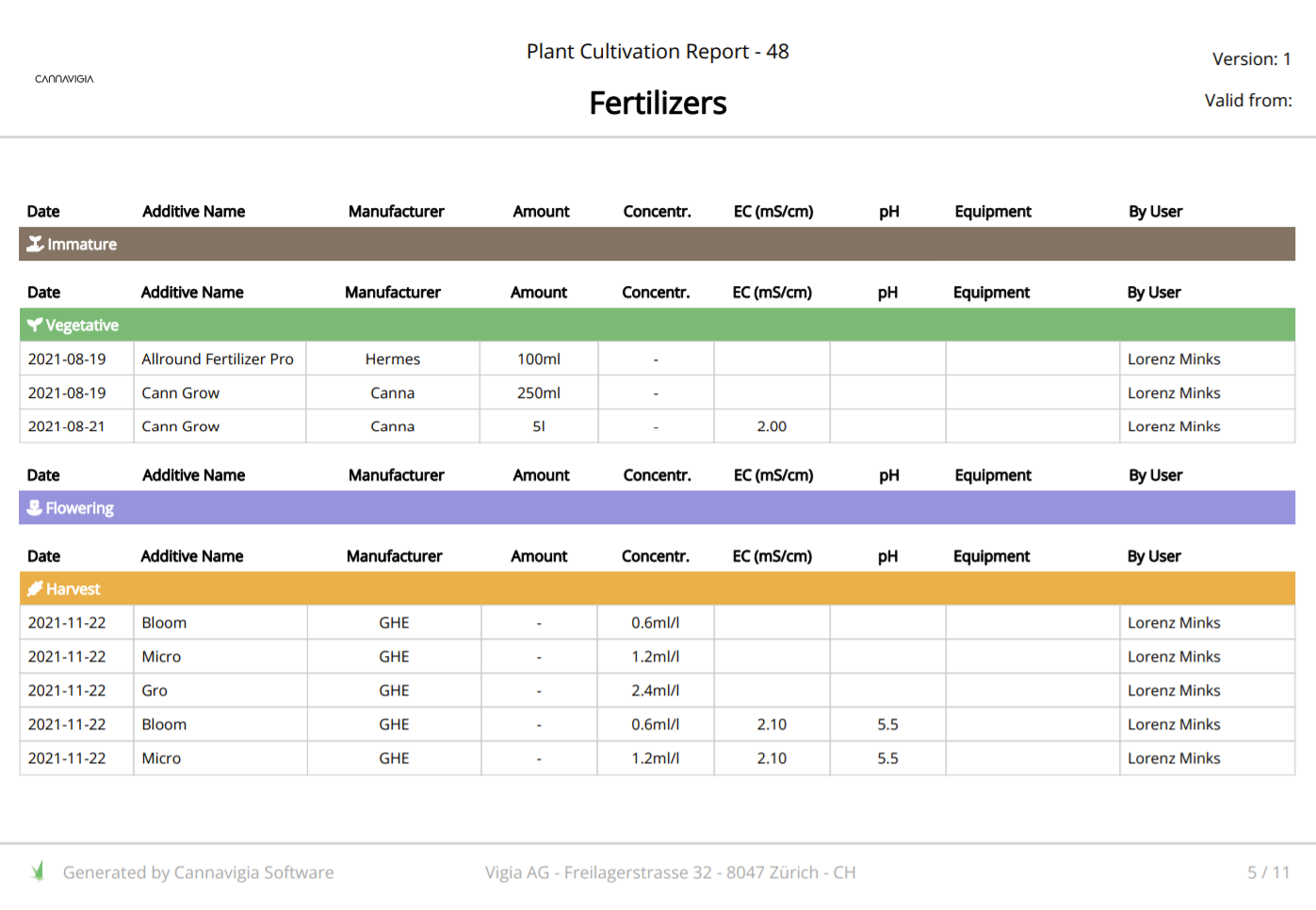 The plant cultivation report has received a new design and information is new organized and phase-wise color coded to make it easy to extract relevant information.