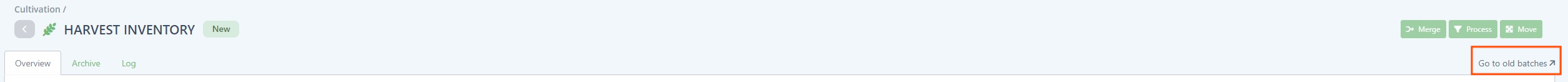 Harvest inventory showing all harvest batches