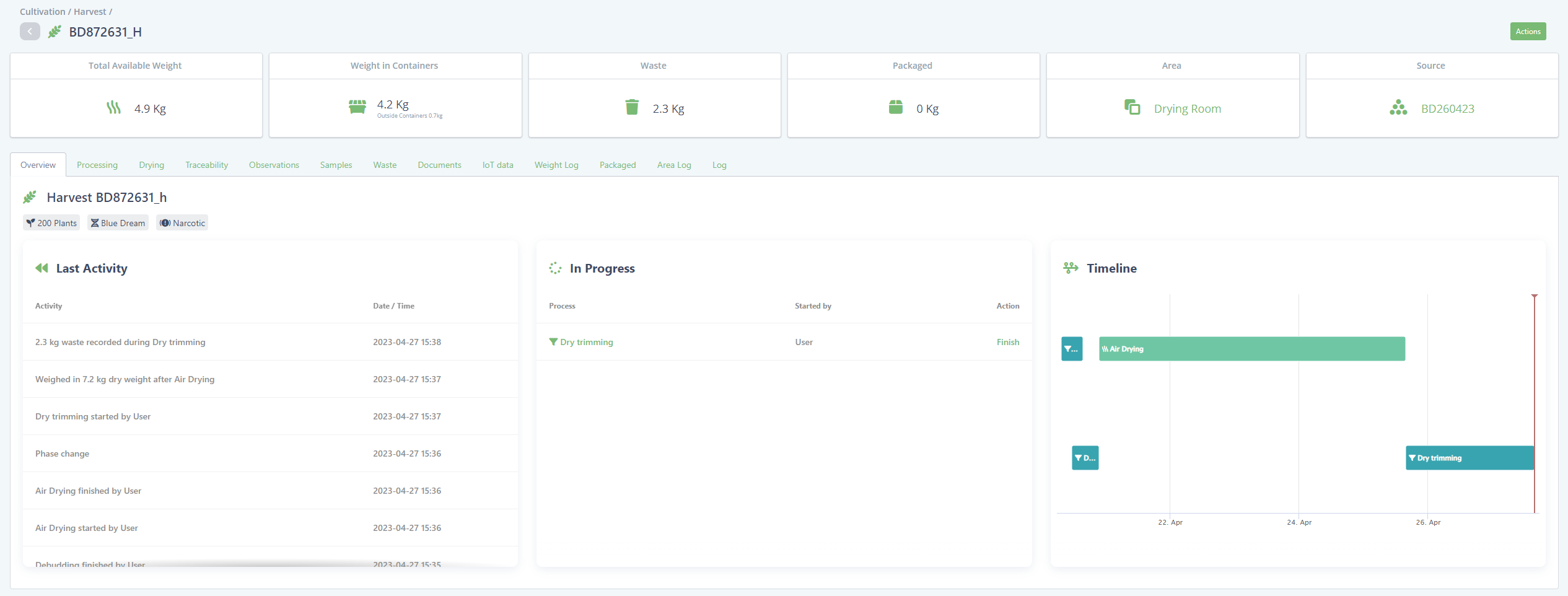 By improving the system we are able to display all relevant information in the harvest inventory. The section processing tasks and drying are no longer necessary.
