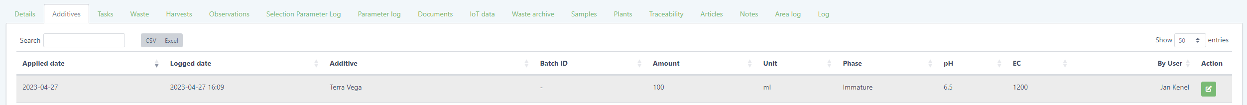 Weighing in is now possible, this means you can input the exact amount weighed, allowing you to select the correct unit (g, kg, etc.), specify the scale used to weigh and which harvest container it was loaded into.