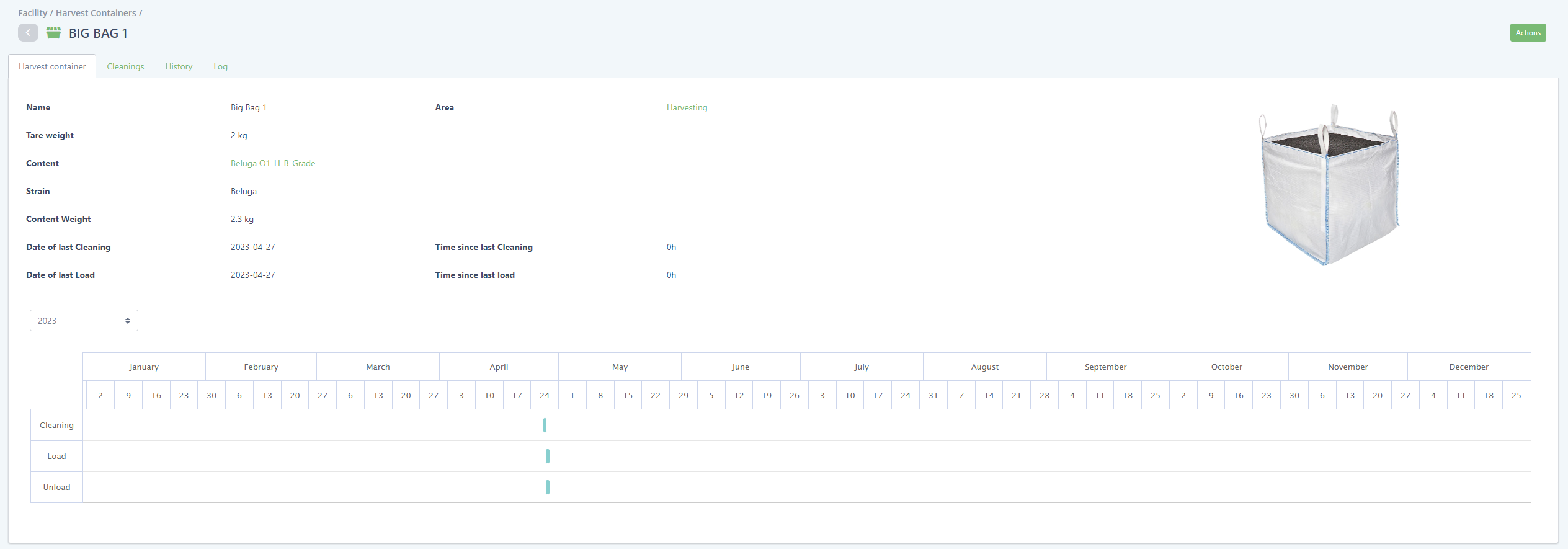 Load and unload harvest containers. Harvest containers can be loaded and unloaded with specific weights, allowing you to track the movement of your individual containers throughout the facility.