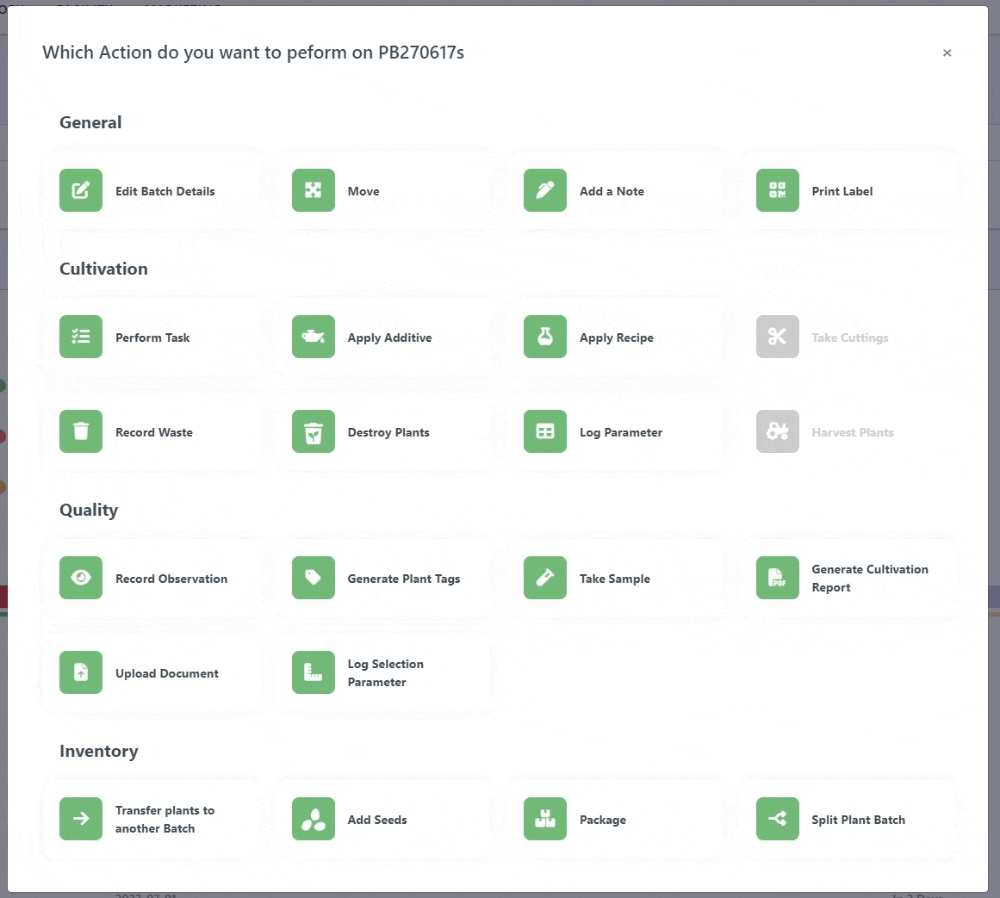 Automated plant and harvest batch naming has been added, it is still possible to enter a custom ID