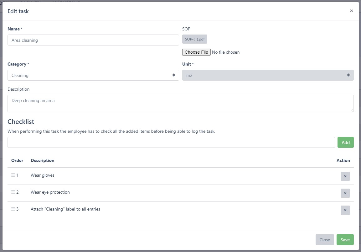 To make sure before a task is being done all the necessary prerequisites are met it is now possible to attach a checklist to each task.