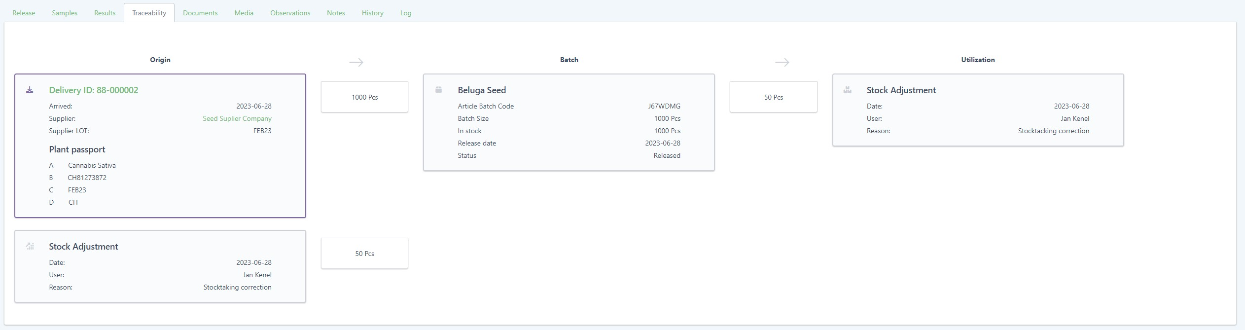 In the plant batch detail view, the tab plants has been removed as it was doubling the information from the traceability