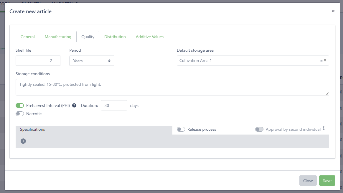 We have added a system where you can store the PHI duration on your pest management articles. When applying the pest management additive the system will warn you if you want to harvest before the PHI duration has passed.