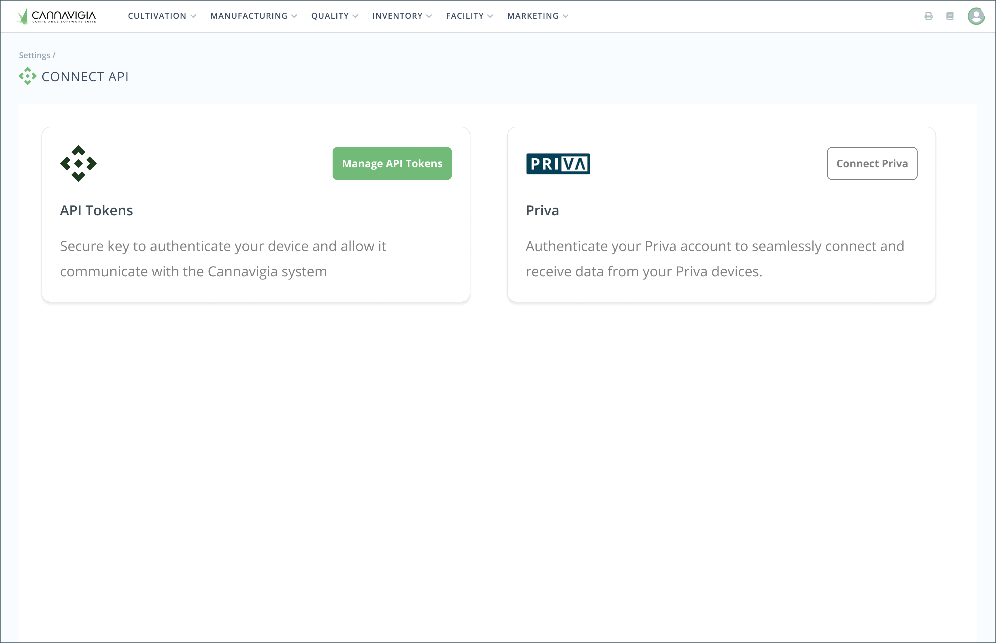 Connect Priva account to Cannavigia system