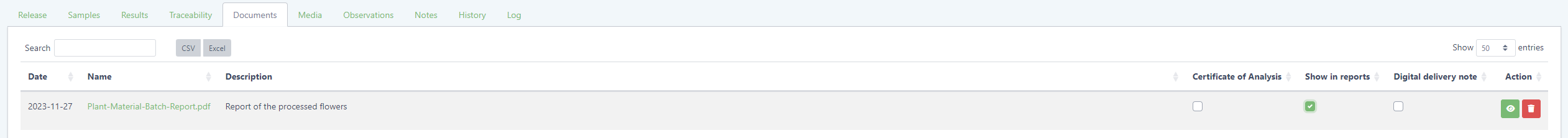 Documents uploaded to an article batch can be specified as Certificate of Analysis