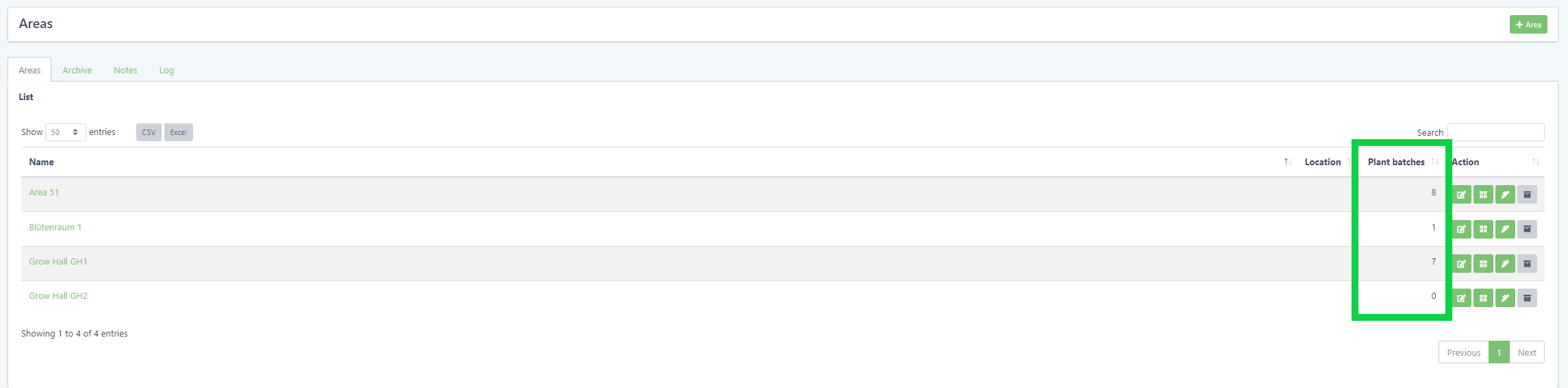 In the overview of the areas there is now an additional column where you can easily see how many plant batches are currently in this area.