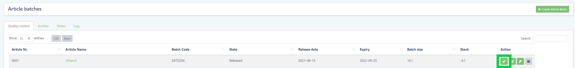 A sample of the corresponding article batch can now be taken directly from the article batch overview in quality control.