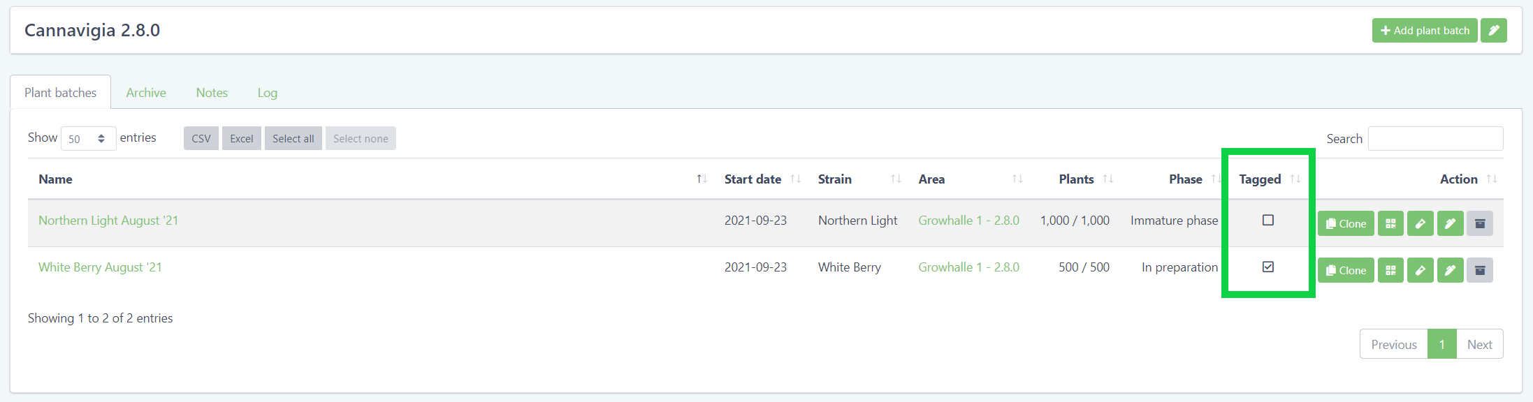 In the project view you can now see at a glance which plant batches are tagged and which are not.
